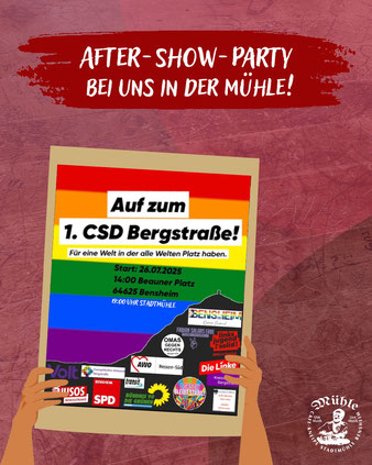 Am 26.07. steigt bei uns in der Mühle die After-Show-Party – lasst uns gemeinsam weiterfeiern und die Nacht bunt machen!