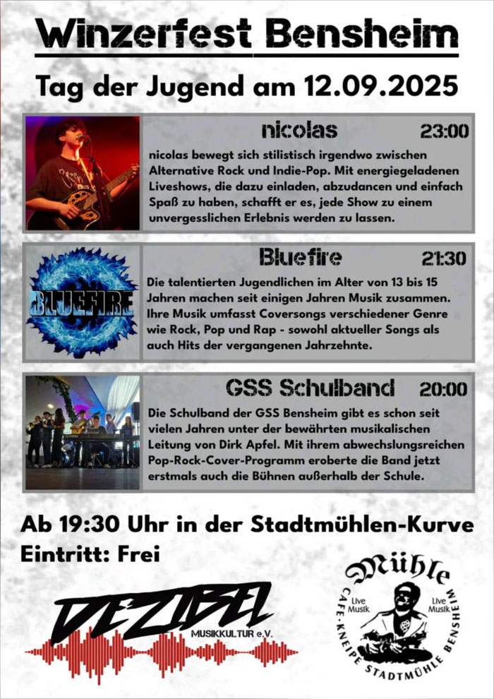 Wie immer bieten wir jungen Talenten eine Bühne in unsrer Stadtmühlen-Kurve!